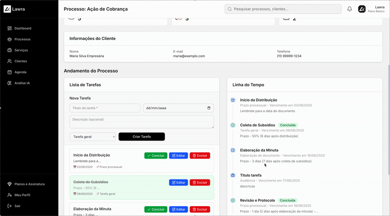 Nossa plataforma foi desenhada especialmente para advogados autônomos e pequenos escritórios que buscam máxima eficiência sem a complexidade de sistemas corporativos. Se você valoriza seu tempo e busca uma ferramenta intuitiva para gerenciar seus processos, prazos e clientes, o Lawra.ai é perfeito para você.